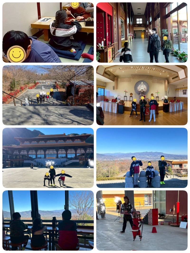 活動内容を変更して、伊香保に行ってきました。 昼食は「水沢うどん」を食べて、その後、法水寺へ。 法水寺は圧巻な建物で、異国地を感じました。 まだ時間があったので、帰りに道の駅に寄ったら日光猿軍団のイベントを行っており見学させてもらいました。 芸が上手で、子ども達は喜んでいました。