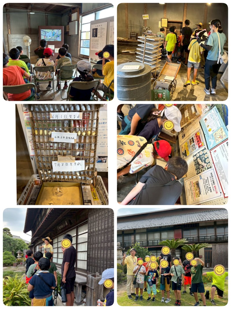 小さな蚕から糸が取れる事に驚きのお友達もいて興味深く見学していました。