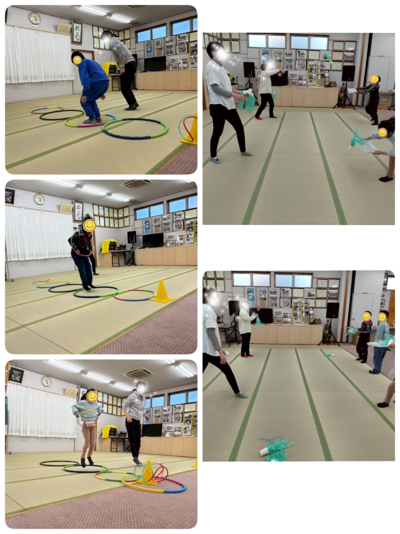 今回は、区民センターをお借りして目と身体の動き運動を行いました。 出来た、取れた時の子どもたちの表情は生き生きしていますね!